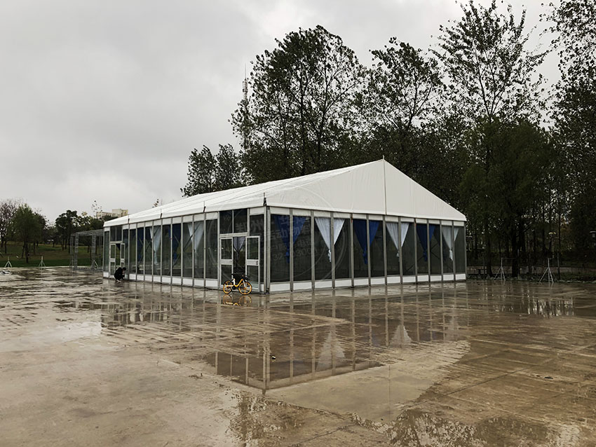 給青山區開工儀式形成了一道美麗的風景,測試架玻璃篷房不僅可以保護您的篷房