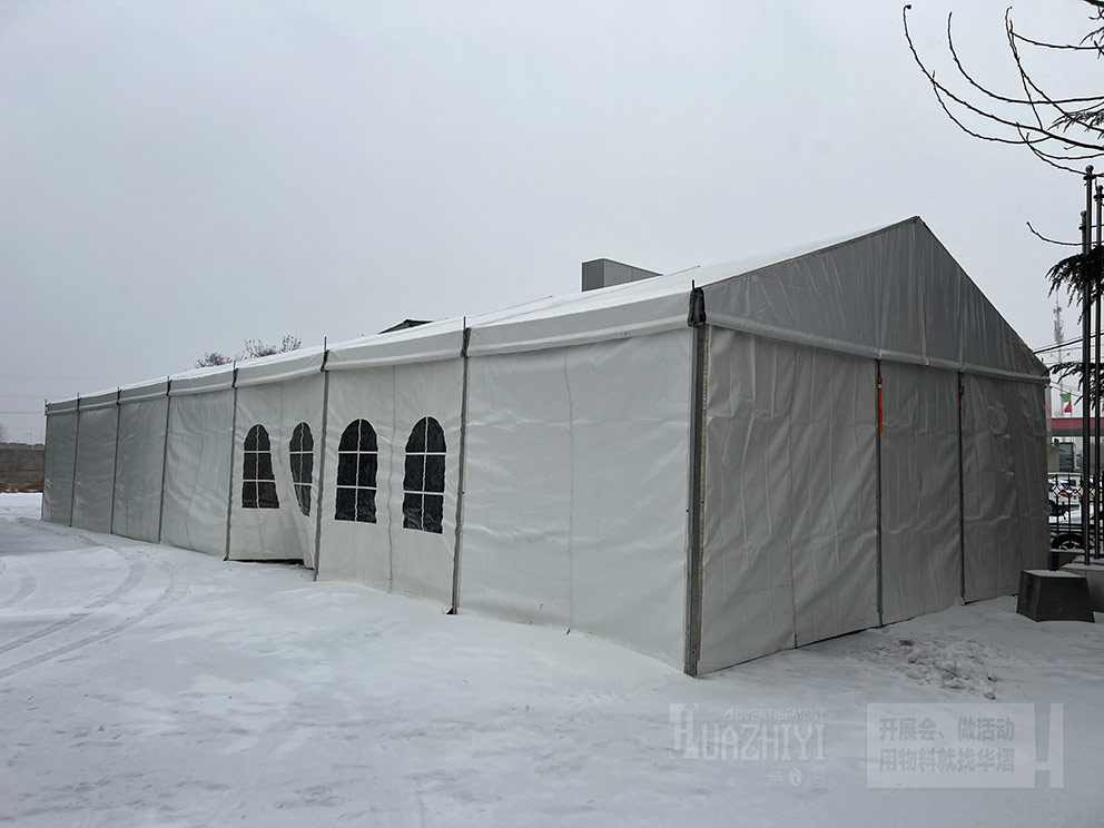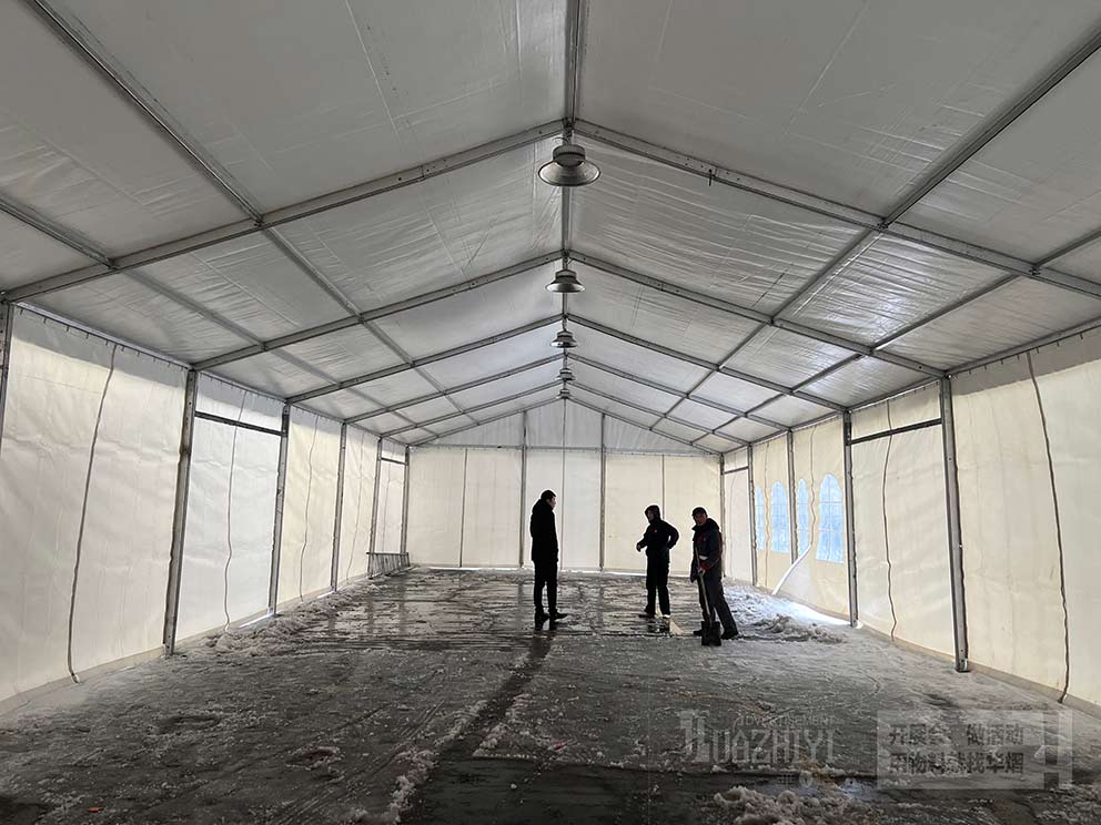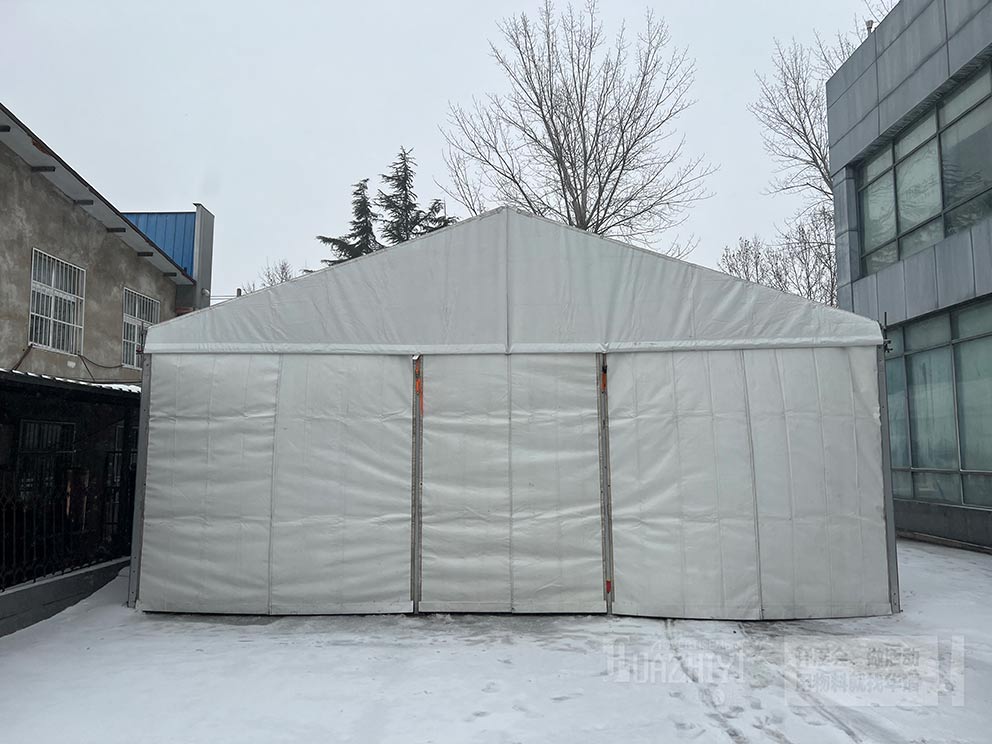 華之熠篷房的篷布是有保溫材料的,可以阻擋一部分寒冷空氣,同時建議您配備上取暖設備,正常開啟暖風機或空調的情況下,在雪天,篷房頂部也不會有太多積雪,也能夠進一步提高室內溫度,確保篷內工作人員可以感受到溫暖和舒適。