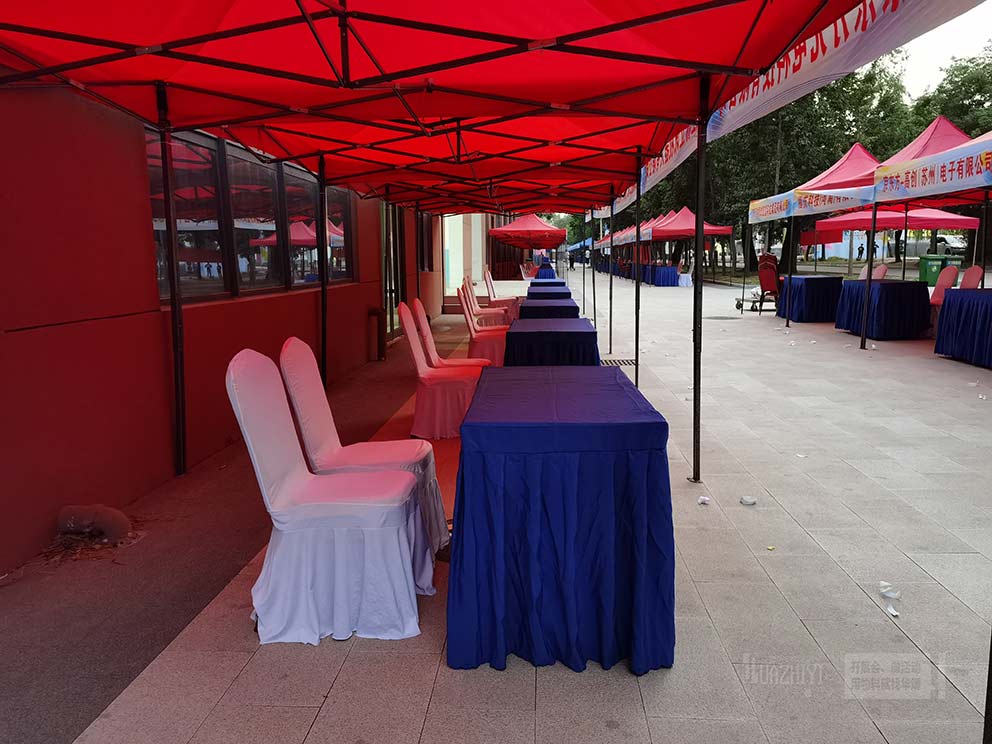 鄭州篷房出租廠家的專業(yè)團隊還為雙選會現(xiàn)場提供了全方位的服務(wù)支持。從篷房的搭建、布置到后期的拆除、清理,華熠都嚴格把控每一個細節(jié),確保整個活動的順利進行。同時,華熠現(xiàn)場人員還為現(xiàn)場提供了專業(yè)的照明、音響等設(shè)備,讓雙選會現(xiàn)場的氣氛更加熱烈、溫馨。