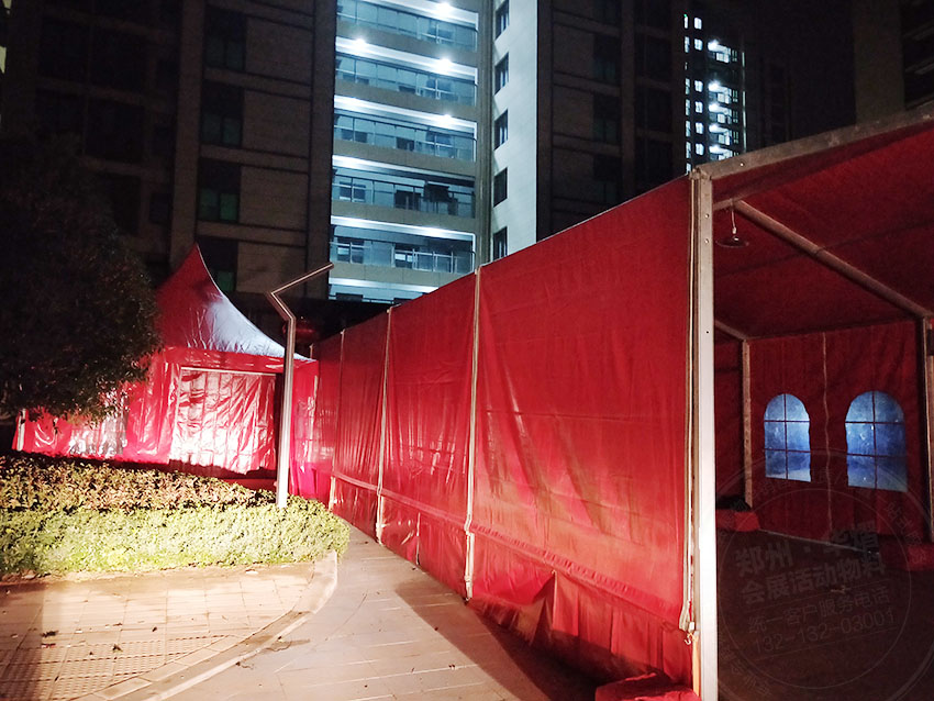如圖,搭建在樓房前面的紅色篷房,顯得格外的喜慶,交房是一個(gè)喜慶而又神圣的節(jié)日,業(yè)主懷著愉悅的心情,來(lái)到樓盤(pán)處,看見(jiàn)紅色的篷房心情會(huì)更加的愉悅,紅色寓意著紅紅火火,寓意著未來(lái)在住房子的時(shí)候能夠日子紅火,日子開(kāi)心。在璀璨熙湖交房中的篷房搭建,華熠僅僅用了半天時(shí)間就把紅色的大篷房搭建完成,可見(jiàn)華熠不僅有著搭建師傅為您搭建,在時(shí)間上也如約提前完成,為您節(jié)省了不少時(shí)間。不僅如此華熠還有著其他類型的篷房租賃服務(wù)。如:鄭州透明篷房租賃、鄭州玻璃篷房租賃、鄭州尖頂篷房租賃、鄭州球形篷房租賃等眾多類型供您選擇,以此來(lái)滿足您不同的活動(dòng)現(xiàn)場(chǎng)需求。