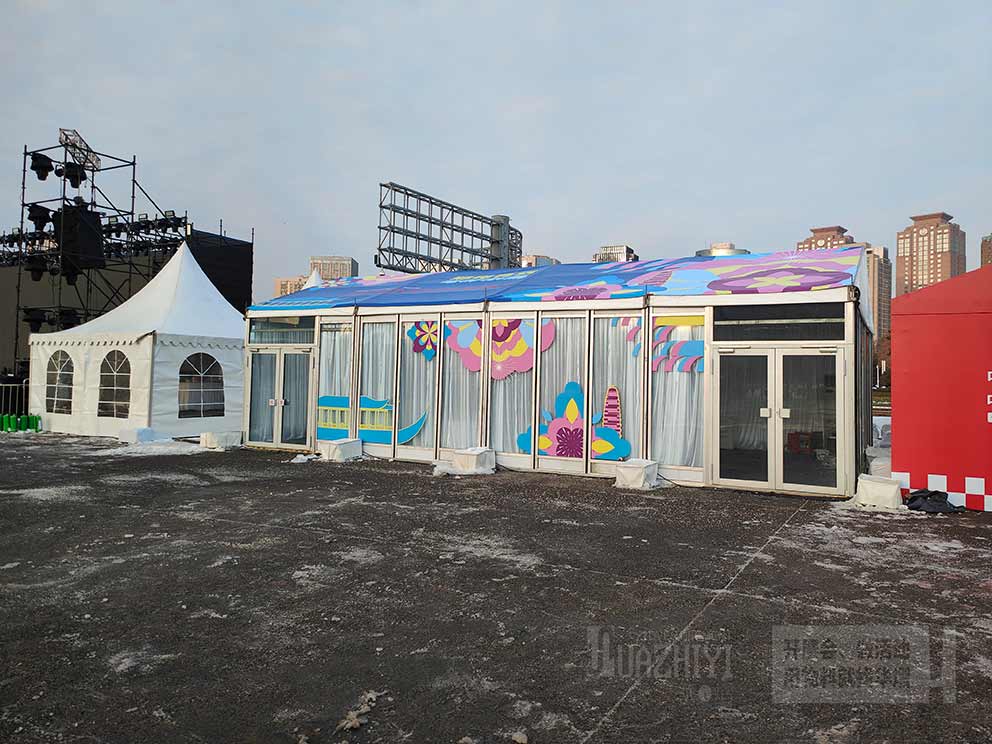 像此次的燈會(huì)慶典活動(dòng),為了適合活動(dòng)需求,就在篷房外部做了裝飾畫(huà)面,創(chuàng)造出了獨(dú)特的視覺(jué)效果,讓玻璃篷房與現(xiàn)場(chǎng)合二為一,沒(méi)有一絲突兀。結(jié)構(gòu)上更是簡(jiǎn)單堅(jiān)固,搭建過(guò)程快速而高效,大大幫我們節(jié)省籌備時(shí)間和成本。