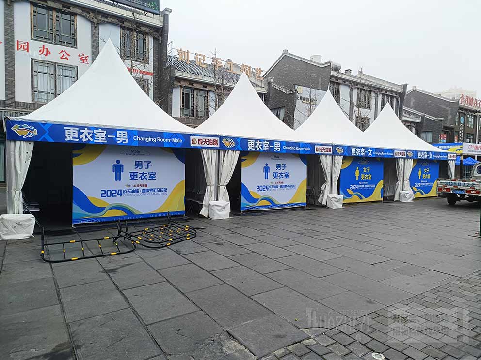 華熠帳篷還具有靈活的組裝和拆卸設計。這使得在馬拉松活動現場快速搭建和拆卸帳篷成為可能,節省了寶貴的時間和人力成本。同時,帳篷的模塊化設計也使得其可以根據現場需求進行靈活調整,滿足不同的使用要求。
