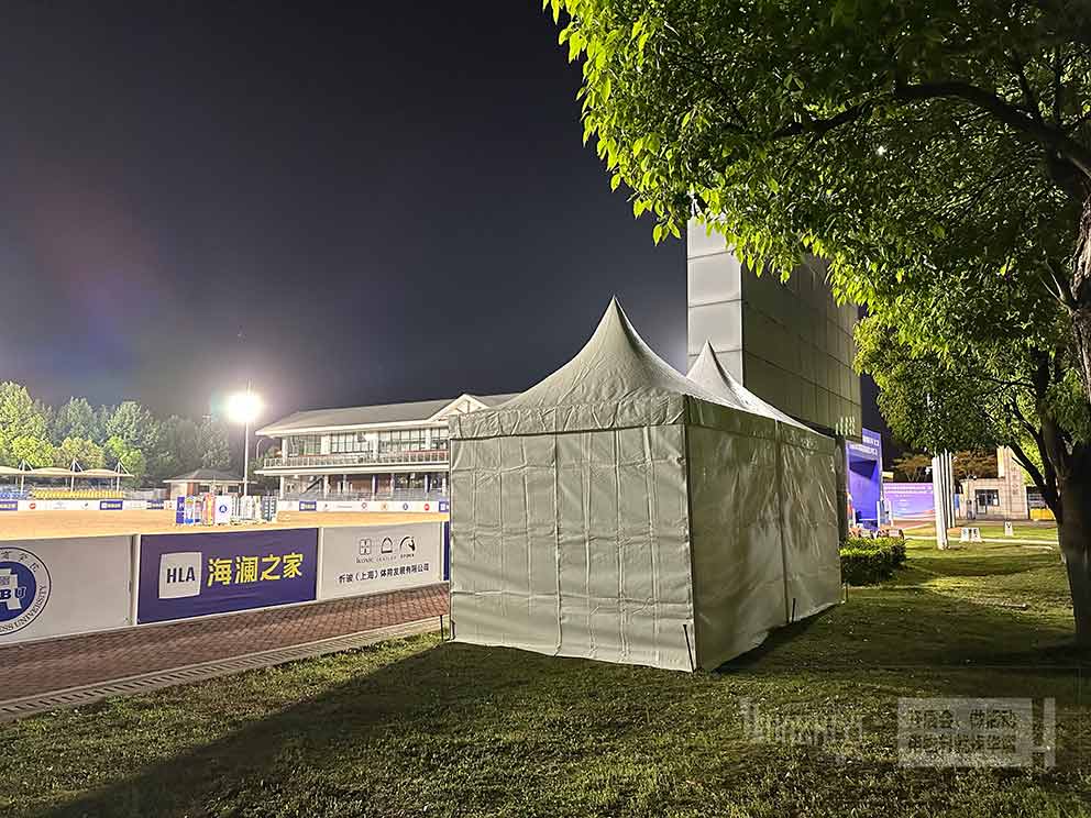 鄭州活動篷房出租廠家在搭建商學院馬術比賽休息區尖頂篷房方面,擁有豐富的經驗和專業的技術團隊。我們致力于為客戶提供高品質、安全可靠的篷房搭建服務,確保商學院馬術比賽的順利進行。