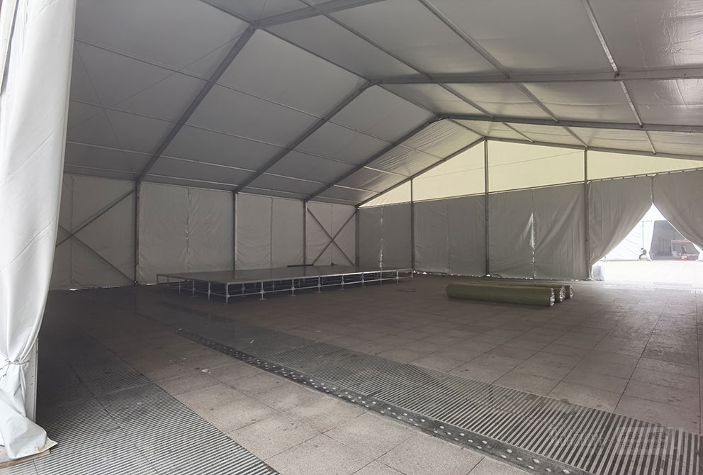 華熠篷房租賃廠家依托豐富的搭建經驗和技術設備,確保了篷房的穩固安全與美觀大方。篷房內部空間布局合理,采光通風效果好,為參展商提供了展示產品與服務的理想平臺。同時,篷房外部設計也頗具匠心,與展銷會主題相得益彰,為整個活動增添了幾分時尚與活力。