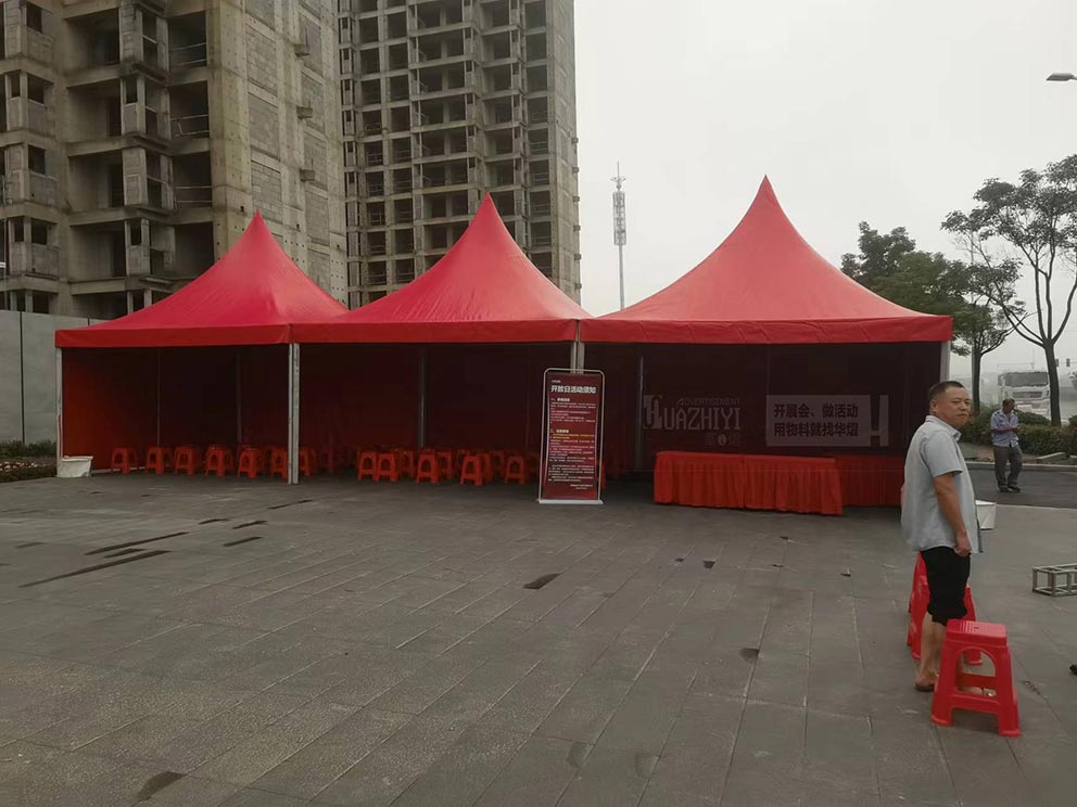 鄭州篷房出租在永威雙鶴湖畔搭建紅色5*5尖頂。隨著活動的進行,這座紅色5x5尖頂篷房成為了湖畔上一道亮麗的風景線,吸引著眾多目光的駐足與贊美。它不僅為活動提供了必要的遮陽避雨功能,更以其獨特的魅力,為活動增添了無限的光彩與活力。在永威雙鶴湖畔,這座紅色篷房成為了連接自然與人文、傳統與現代的橋梁,讓人們在享受自然美景的同時,也能感受到文化的魅力和城市的溫度。