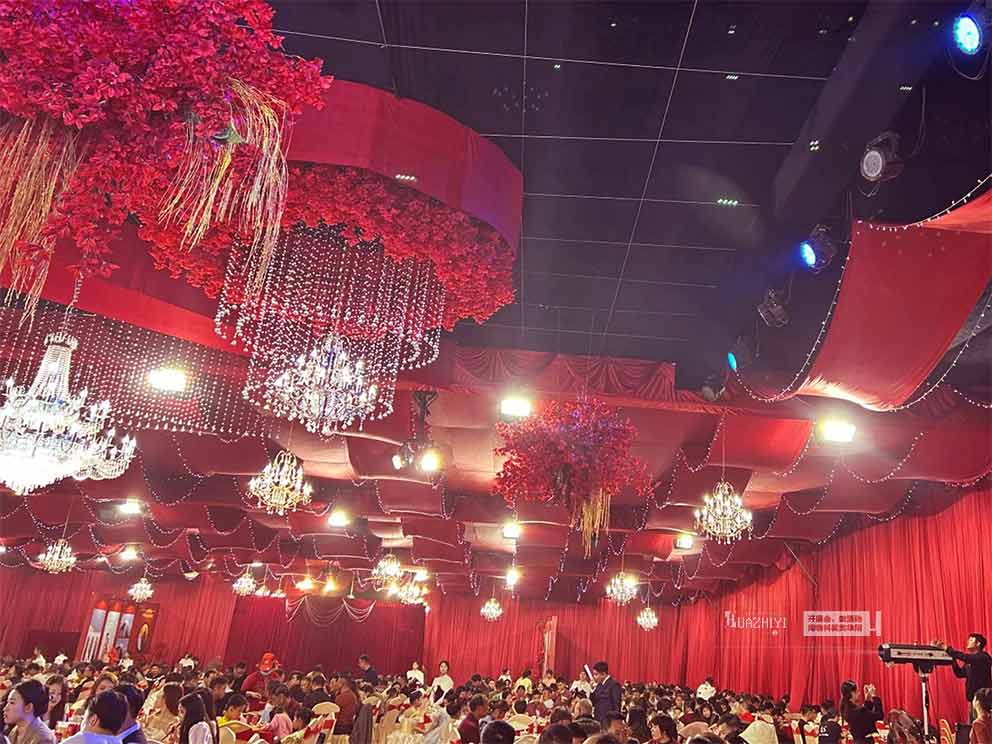 婚慶篷房燈光布置的首要任務是基礎照明,確保篷內無光線死角。焦作婚禮篷房出租推薦按篷房面積搭配合適的基礎燈具,100-200㎡的中小型篷房,可懸掛6-8盞400W的帕燈,均勻分布在篷頂桁架上,光線柔和且覆蓋范圍廣。安裝時需注意燈具高度,距離地面不低于2.8米,避免遮擋視線或造成安全隱患。