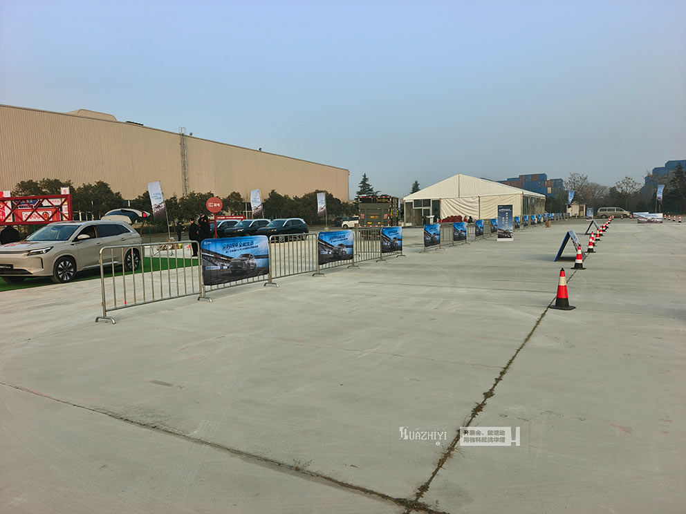 場外布置的道旗整齊排列,醒目傳遞試駕會主題,強化品牌氛圍;錐桶有序劃分出試駕路線、停車區域等功能分區,保障試駕過程安全有序。華熠物料租賃公司不僅提供優質的物料租賃,更配套全流程的專業服務。試駕會期間,團隊安排專人值守,及時響應物料調整、維護等臨時需求;活動結束后,團隊將快速完成所有物料的拆除、回收與場地清理工作,無需主辦方額外操心,有效降低了活動籌備與收尾的壓力。