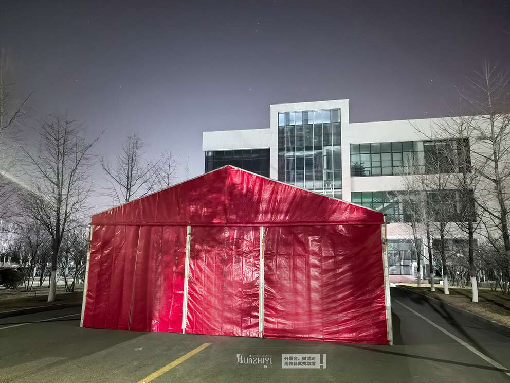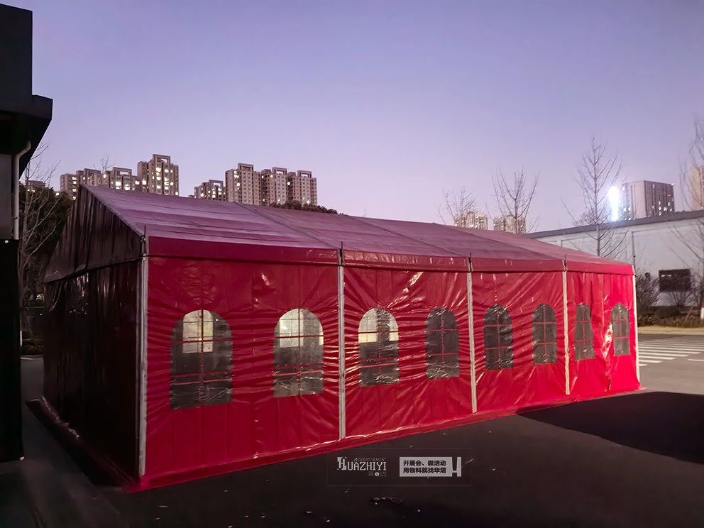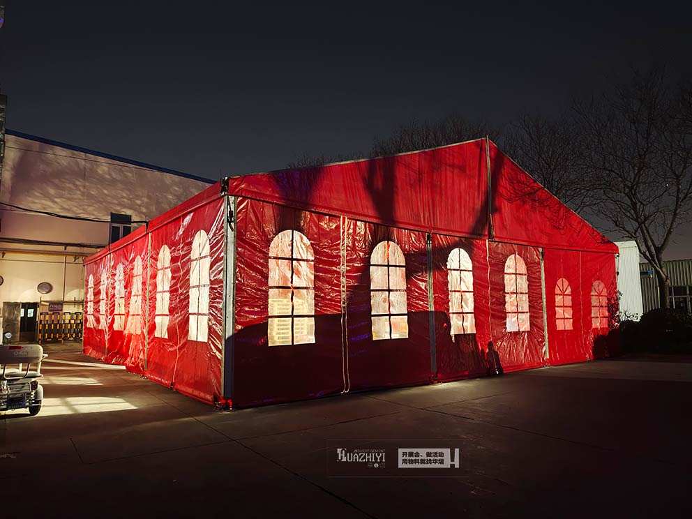 此次搭建的紅色篷房主體框架選用高強度鋁合金材質,經過精細加工與加固處理,結構穩固抗風,能從容應對戶外復雜天氣,為商戶貨物與市民安全筑牢保障。篷布選用防水防曬的PVC刀刮布,不僅色澤飽滿持久,還具備良好的隔熱、通風性能,確保篷房內環境舒適,即便在寒冷天氣也能為市民提供溫暖的采購空間。同時,篷房內部無立柱遮擋,空間利用率極高,商戶可根據經營品類靈活規劃展示區域,無論是特色食品、文創產品還是民俗好物,都能得到充分展示。