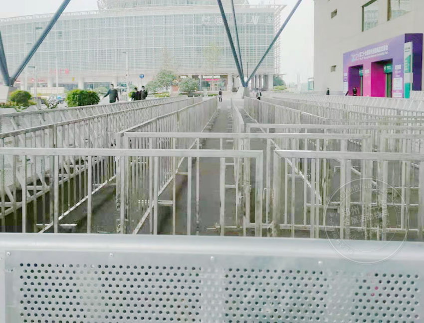 鄭州物料租賃公司長1米寬1.2米防爆欄亮相于會展中心活動現場,防爆欄主要是用于大型活動,臨時活動,大型展覽,汽車巡演,車間隔離,大型慶典活動,大型展覽會議,大型演唱會等。防爆欄是指一款輕便、快捷的阻隔裝置,對人群密集型、開拓型、暴動型場所進行快速多片連接形成隔離安全帶的一種安全實體防護屏障。鄭州會展中心活動現場,華熠為其提供了長1米寬1.2米防爆欄出租服務。